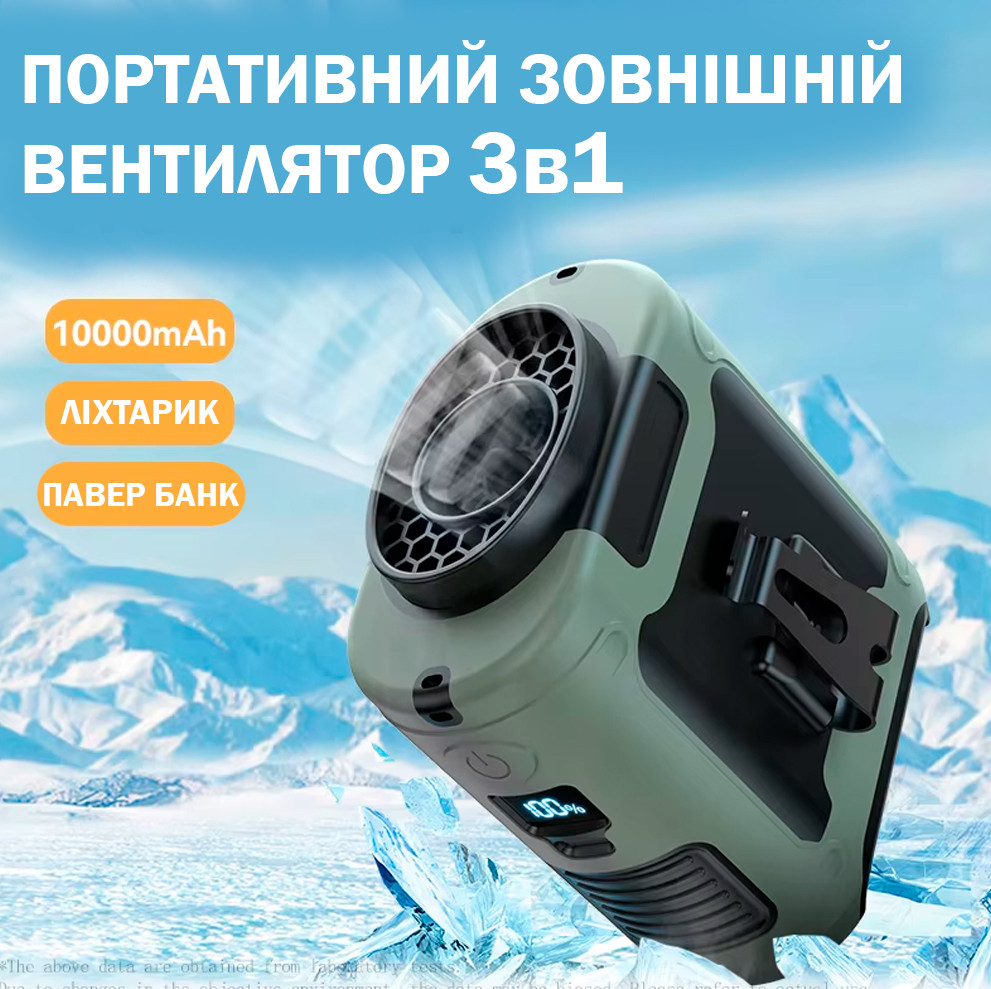 Хіт літа 2025 — портативний вентилятор 3 в 1 з ліхтариком і повербанком 10000 мАг!